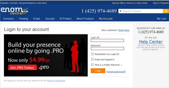 1、进入 https://www.enomcentral.com/login.aspx? 登录EnomCentral