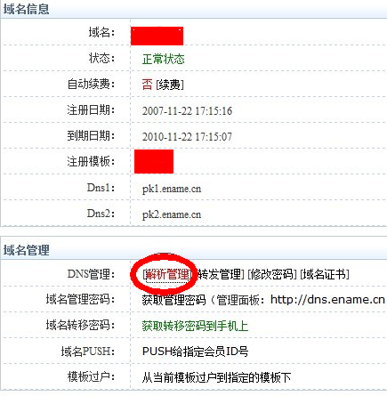 2、进入域名控制面板