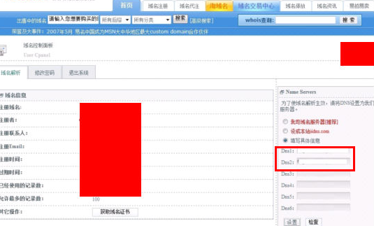 易名中国注册商域名修改DNS地址