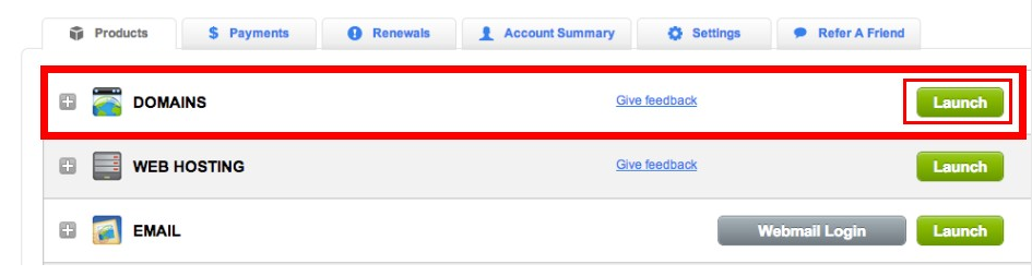 2、登录后,选择【My Account】,然后单击【DOMAINS】后的【Launch】