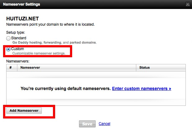 4、选择【Custom】 ,然后点击右下角的Add Nameserver